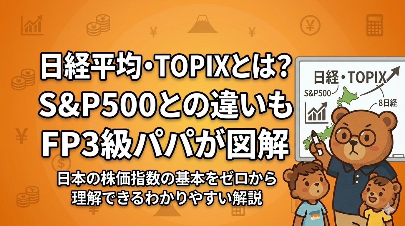 マネー株価指数(インデックス)って何?S&P500・オルカン・日経・TOPIXの関係を、投資歴6年パパが初心者向けにわかりやすく徹底解説。インデックスファンドの仕組みもわかります。
